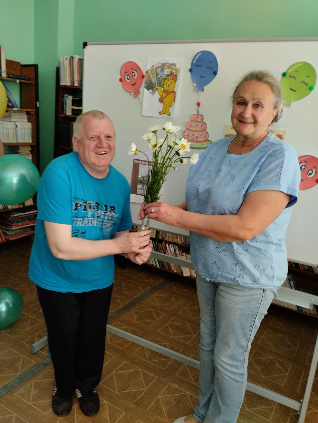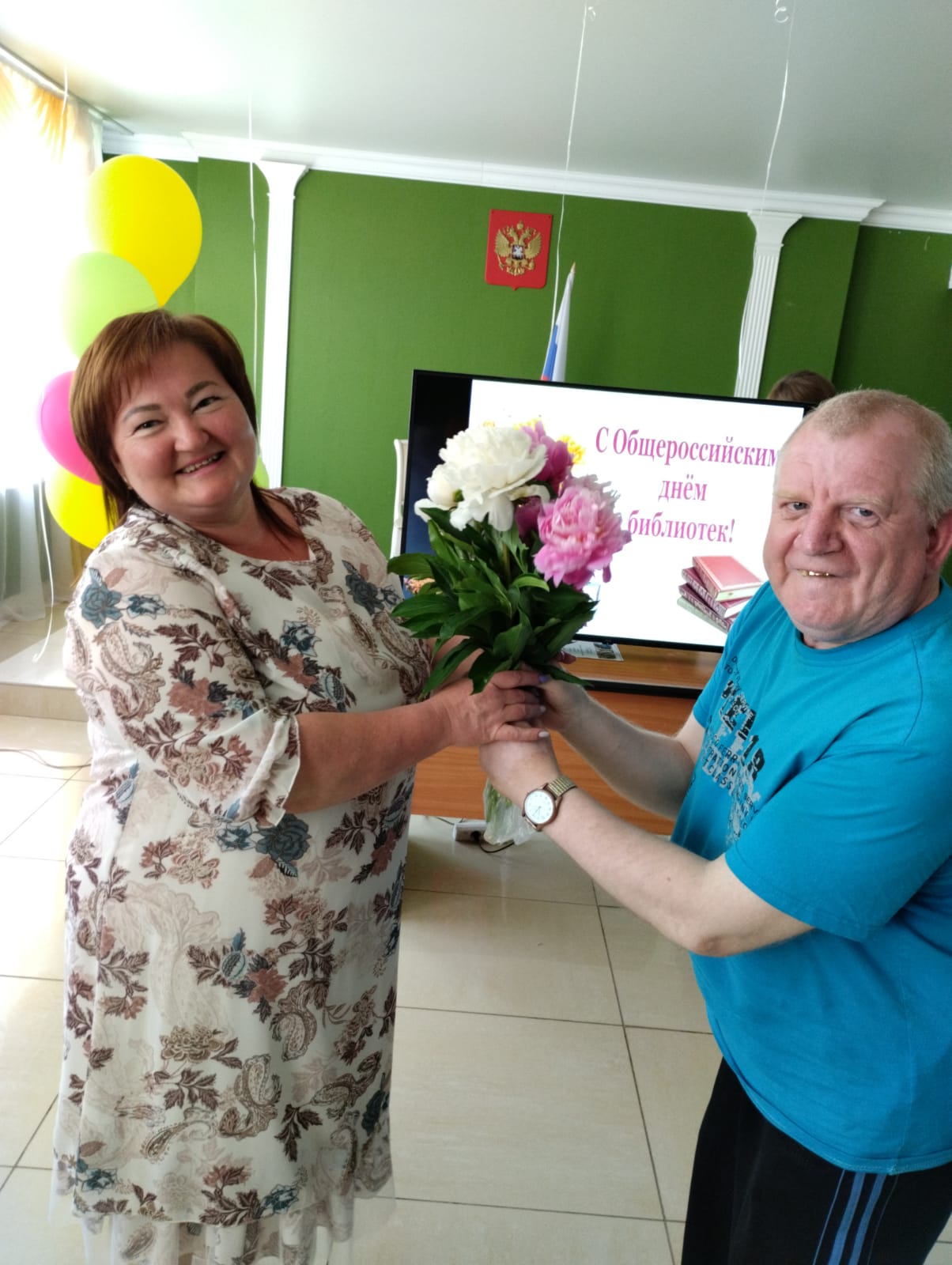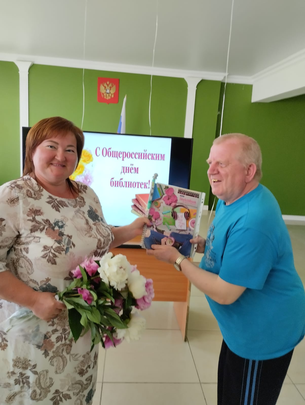 Сегодня культорганизатор дома-интерната Безрукова Н.В. и получатель социальных услуг Мехов В.Н. приняли участие в праздничном мероприятии "Дело вечное-библиотечное", посвященное Общероссийскому Дню библиотек, проходившее в РДК р.п.Беково. Валентин поздравил всех с праздником, читал стихи и вручил букеты директору МБУК Кротковой Е.С. и библиотекарю Лашовой С.В.. От библиотекарей получил тоже подарок: блокнот и классную ручку. Мероприятие доставило всем радость и массу положительных эмоций, ведь каждый участник восхищался выбором своей прекрасной профессии - библиотекаря.