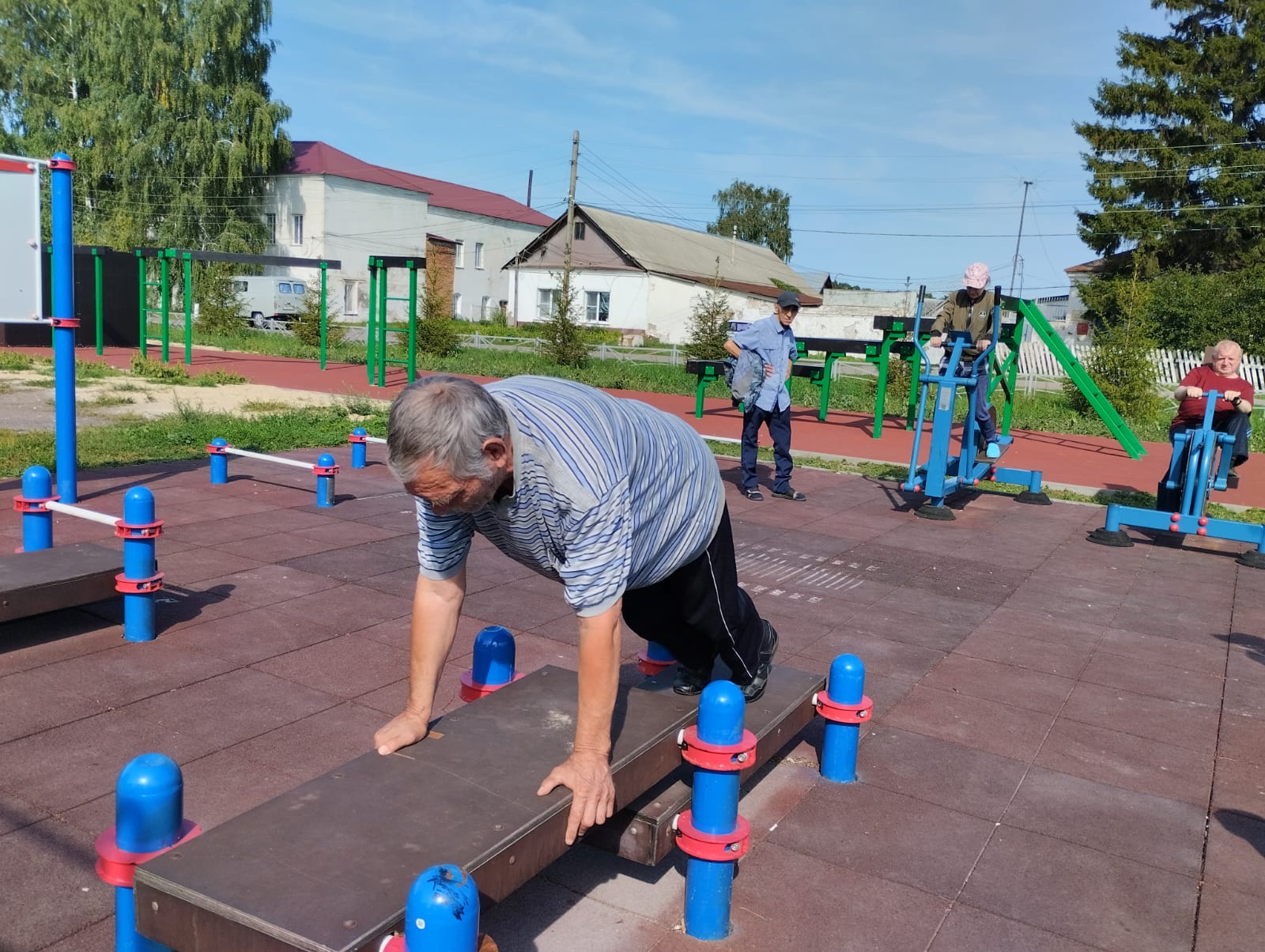 Самые активные, самые смелые и любознательные получатели социальных услуг сегодня вновь посетили спортивную площадку в центре р.п.Беково, позанимались на тренажерах, прошли лабиринт, прыгали, отжимались. Спортивный час провели полезно, ведь движение - это жизнь, а для пожилых людей в двойне.